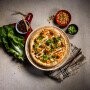 Besprenkel de gebakken pizza met de Crispy chili‑olie (naar smaak). Garneer met grof gehakte pinda’s.